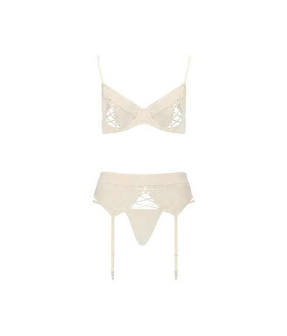 Vous voulez être féminine, sensuelle, délicate et un peu coquine ? Cet ensemble 3 pièces est certainement ce que vous recherchez. Il est composé d'un soutien-gorge et d'un porte-jarretelles avec un motif semi-transparent et des bretelles noires opaques.
